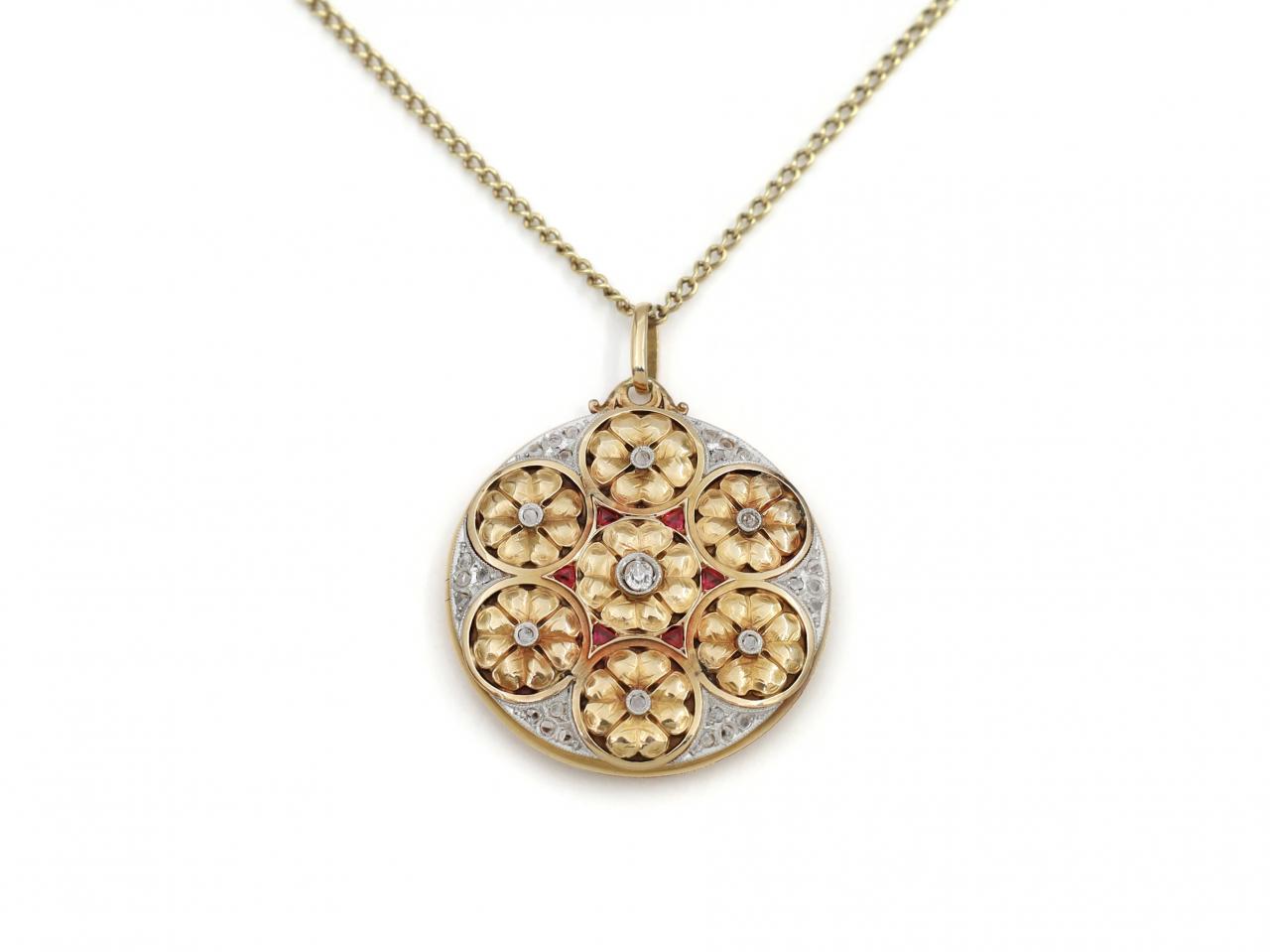 Antique diamond and ruby posy locket in yellow gold