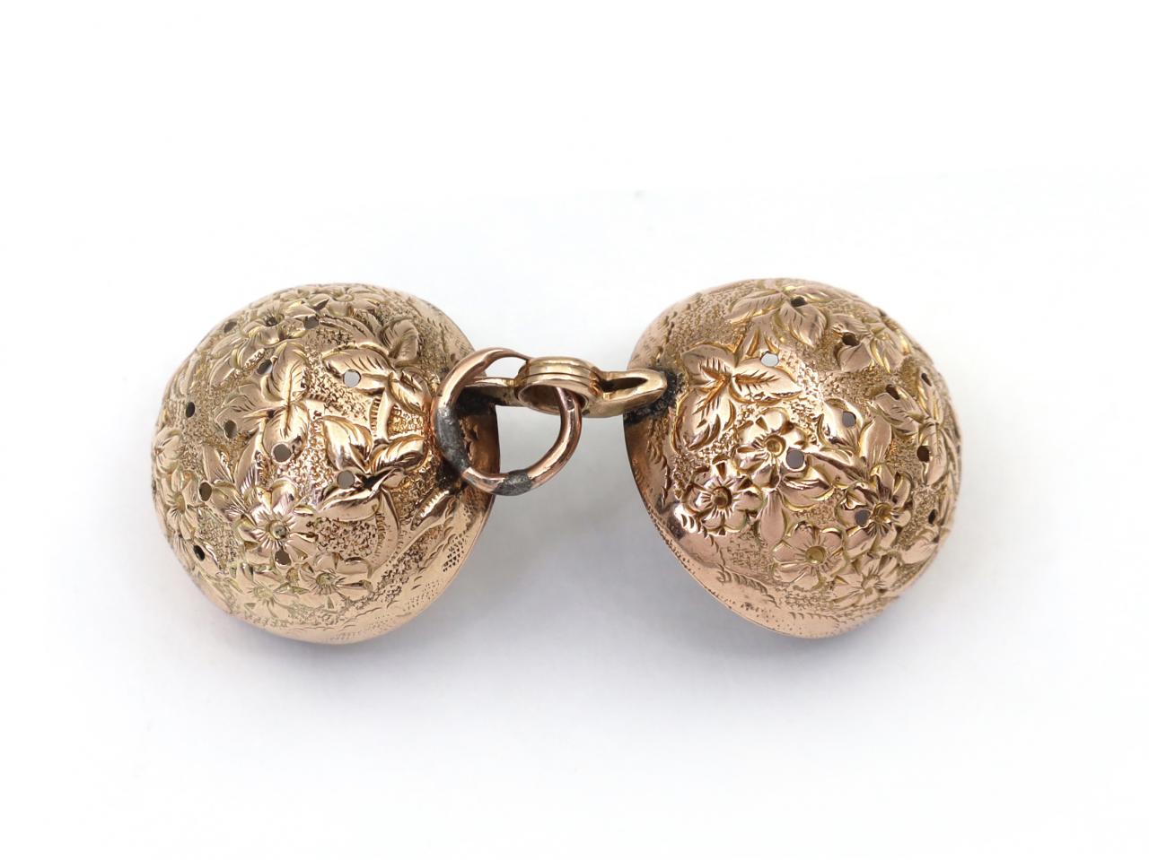 Antique hinged globular flower pomander in 9kt gold Antique hinged globular flower pomander in 9kt gold Antique hinged globular flower pomander in 9kt gold