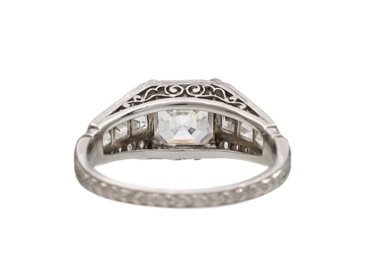 Art Deco 1.71ct Asscher cut diamond solitaire in platinum
