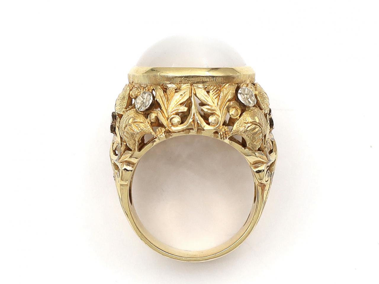 Art Nouveau 18kt yellow gold and moonstone bombe cocktail ring Art Nouveau 18kt yellow gold and moonstone bombe cocktail ring Art Nouveau 18kt yellow gold and moonstone bombe cocktail ring Art Nouveau 18kt yellow gold and moonstone bombe cocktail ring