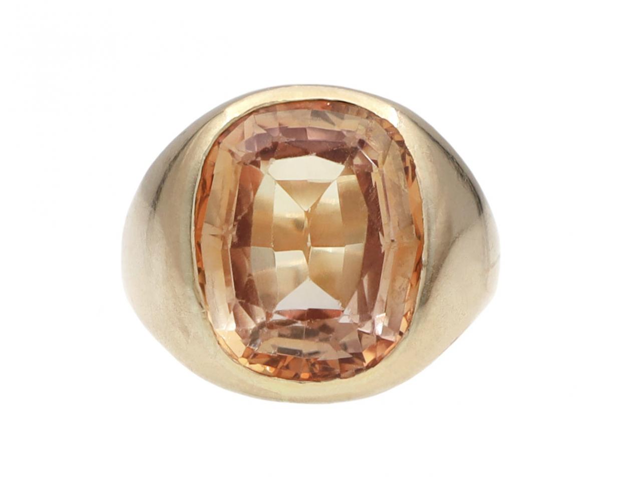 Vintage orange gem set signet ring in solid 14kt yellow gold
